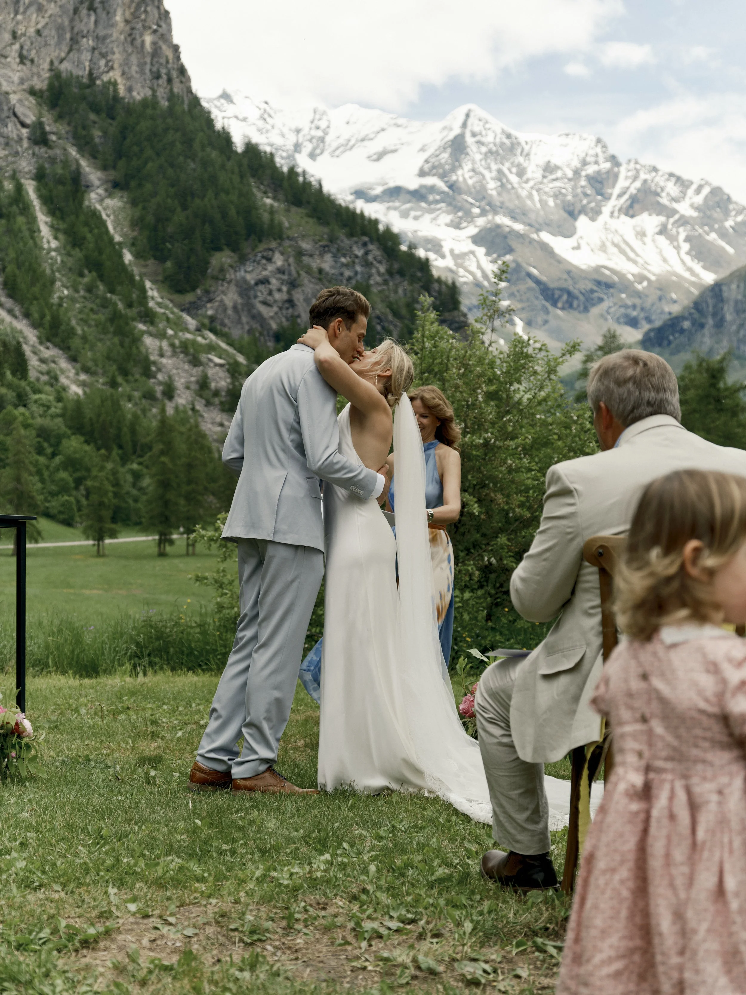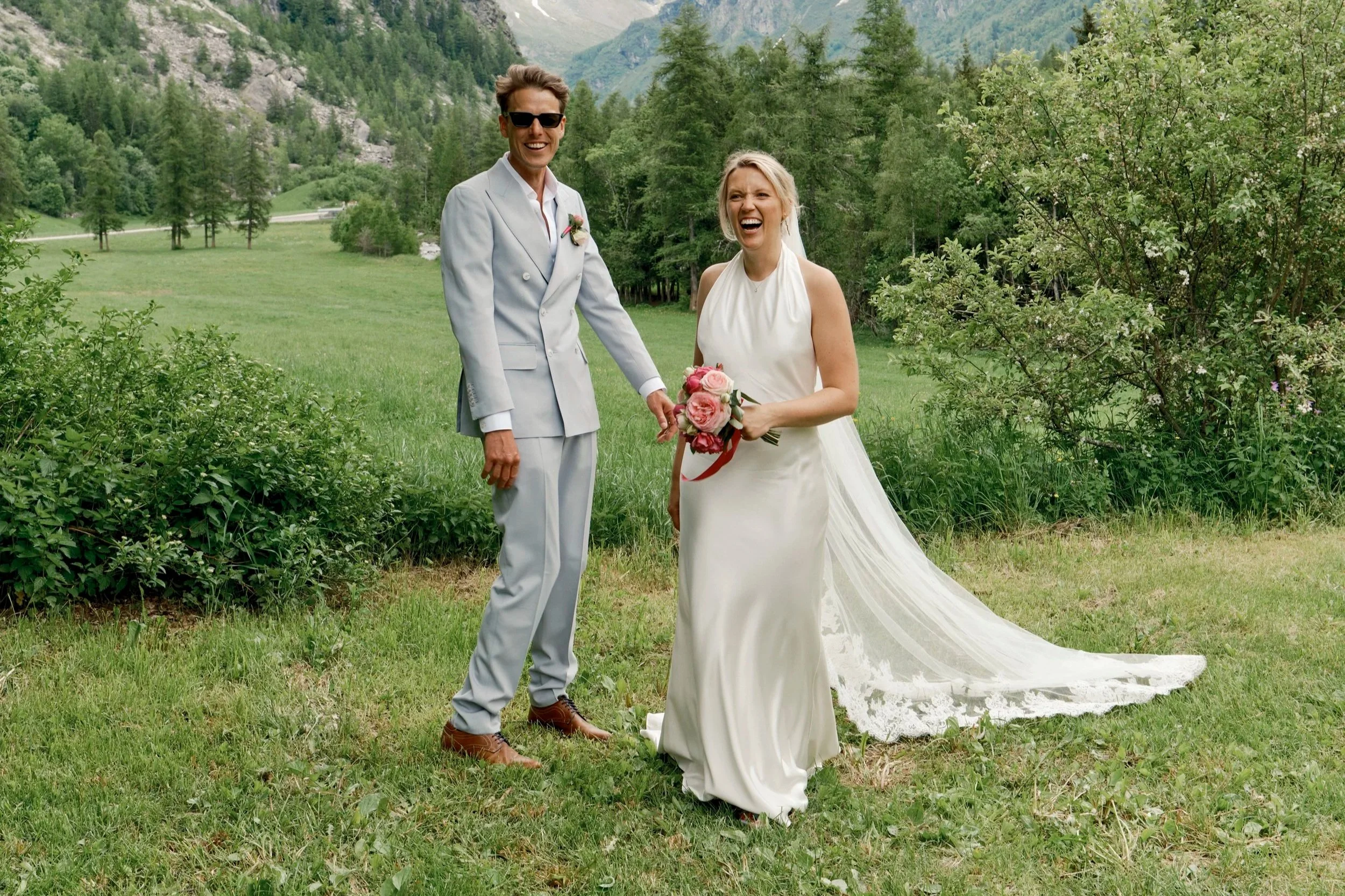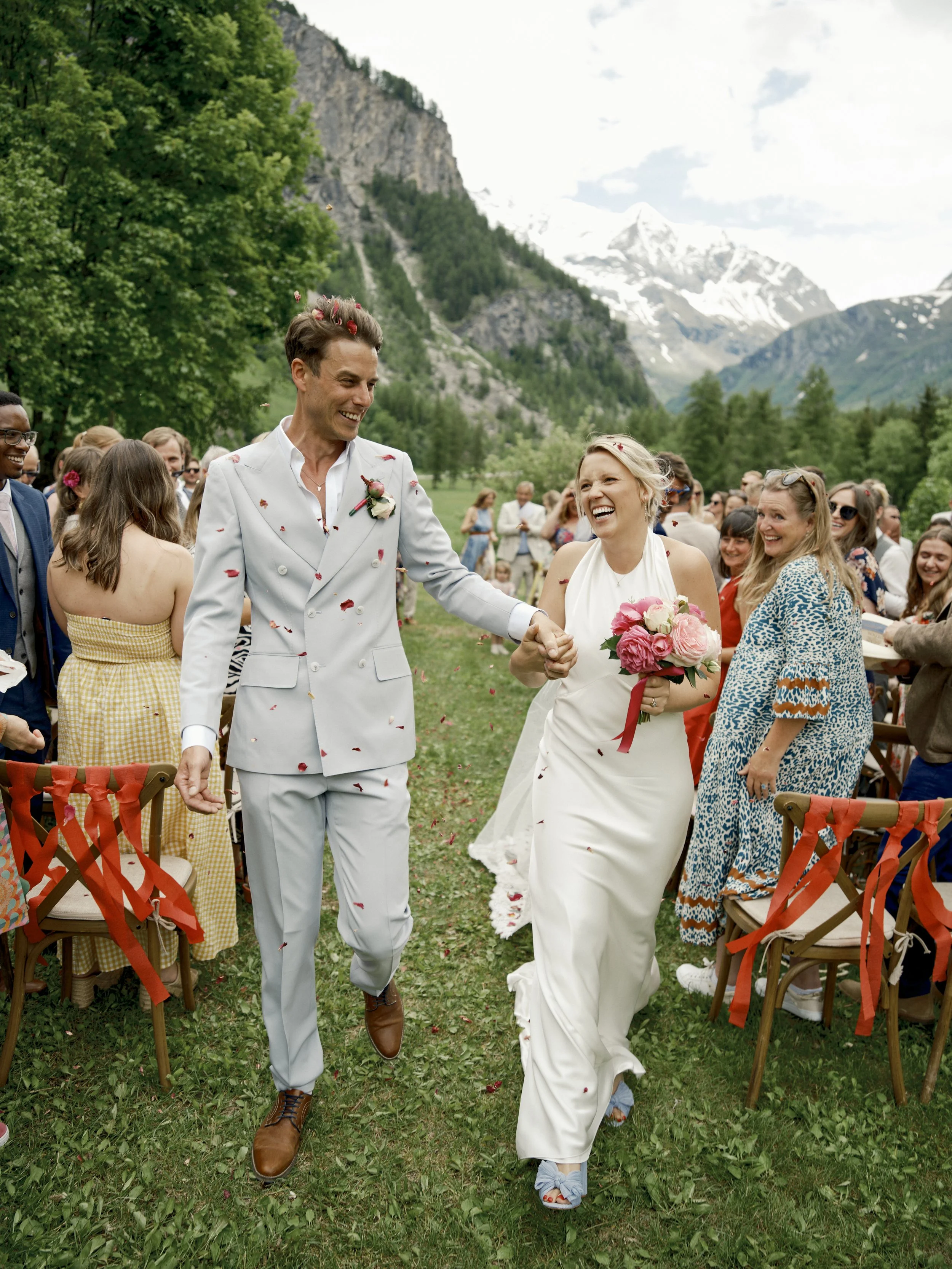 On a warm June day in June 2025, India and her husband Ryan celebrated their wedding surrounded by nature at Camping Lanchettes, a serene alpine setting located at the end of Peisey-Nancroix valley, in France.