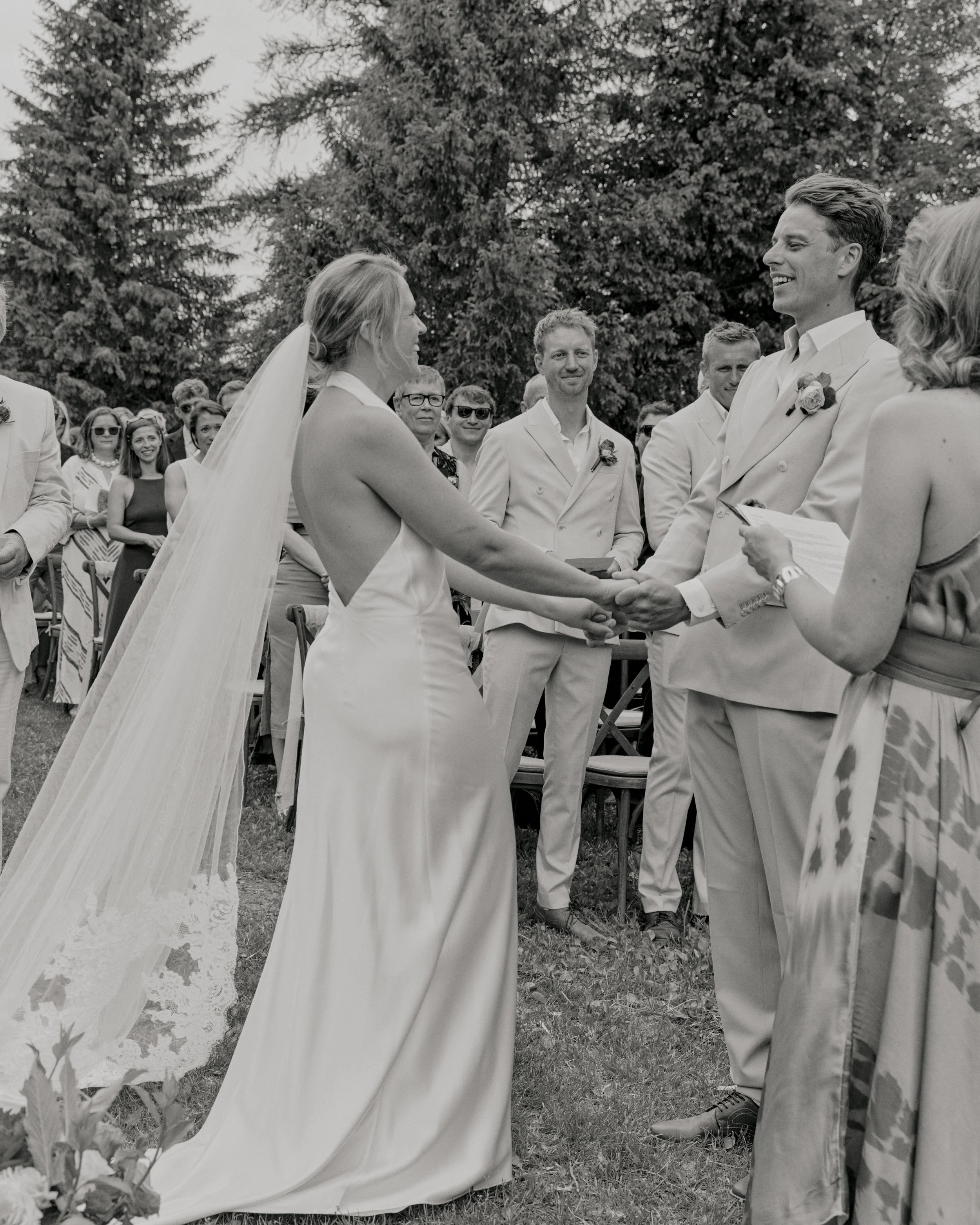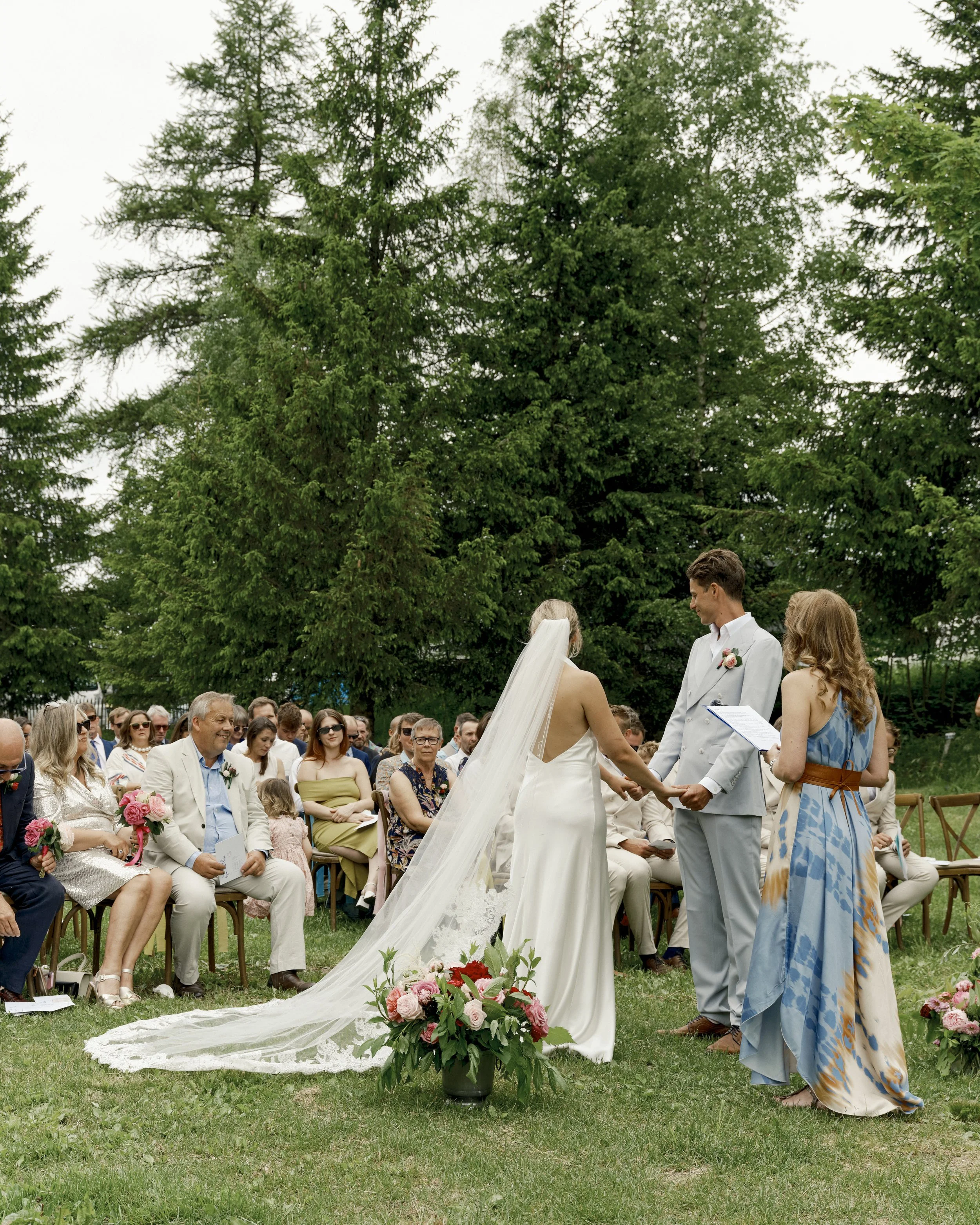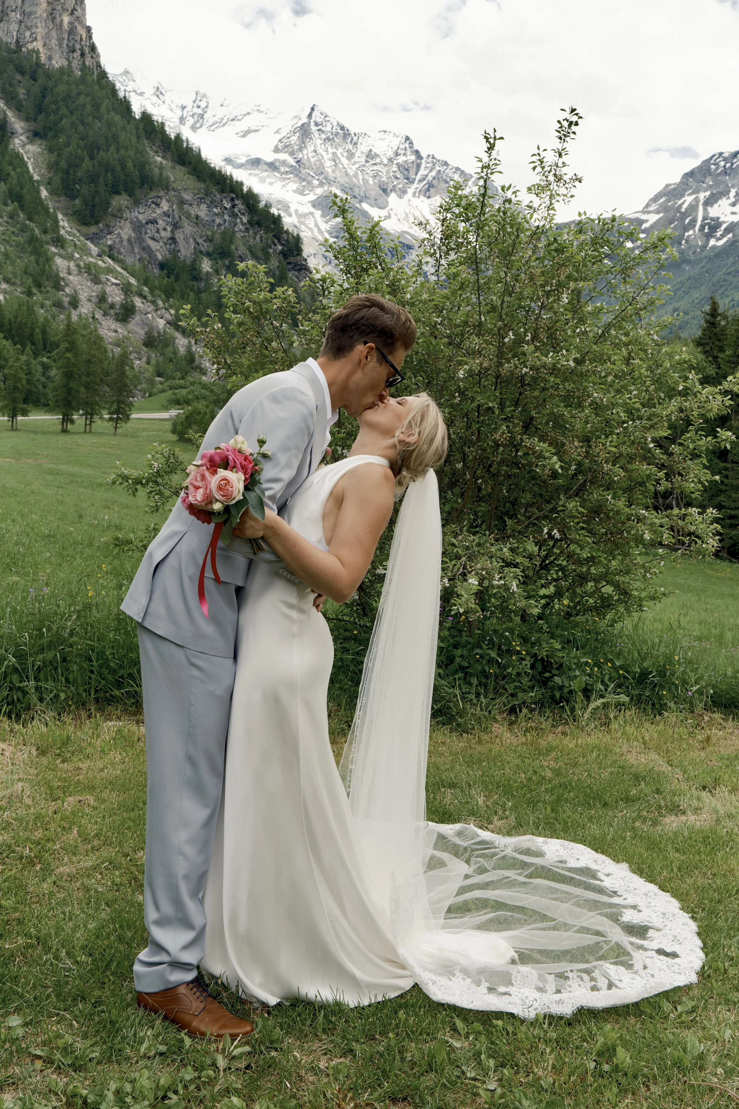 On a warm June day in June 2025, India and her husband Ryan celebrated their wedding surrounded by nature at Camping Lanchettes, a serene alpine setting located at the end of Peisey-Nancroix valley, in France.